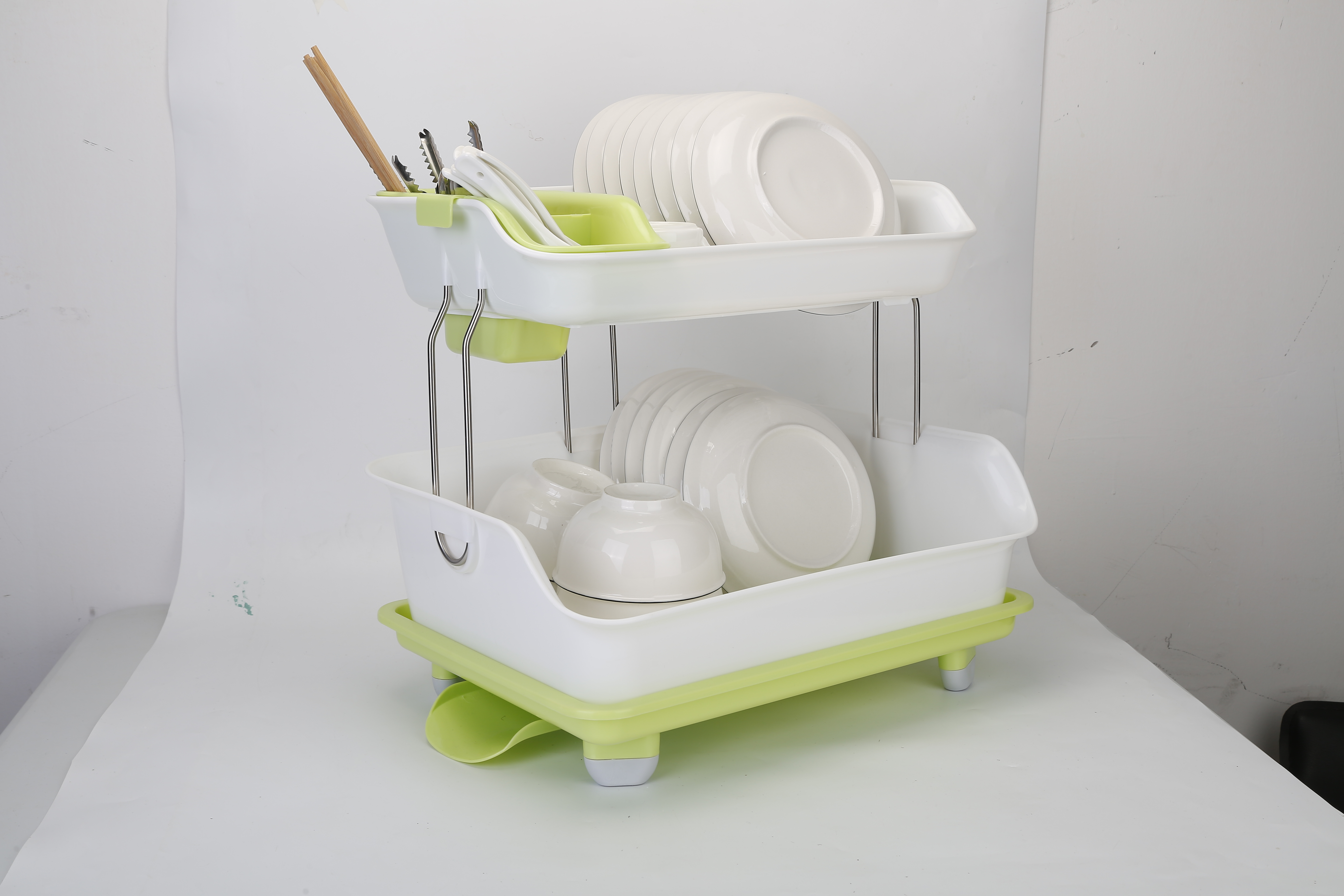 - *Two Tier Large Capacity*: Composed of two racks,this drainer can maximize room usage. The bottom rack can hold 11 dishes and also offer enough space for bowls,mugs,and other utensils. The top rack can place 8 dishes,and a cutlery holder. Home for your Kitchenware!The size of this drainer is 16.5x12.2x15in.